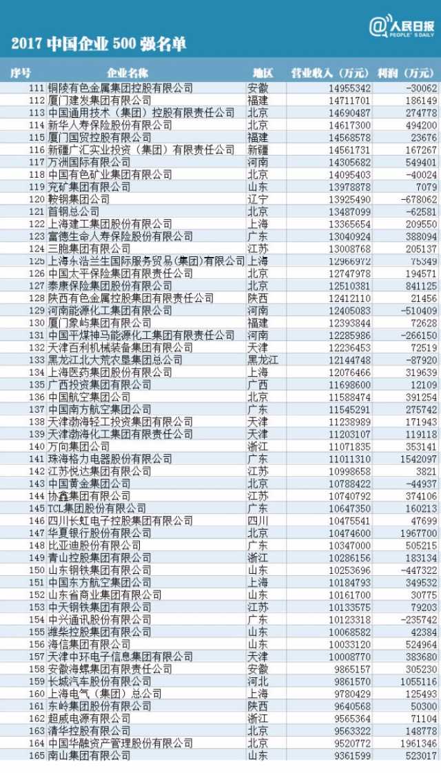 附中國(guó)企業(yè)500強(qiáng)榜單(制圖:人民日?qǐng)?bào)微博)