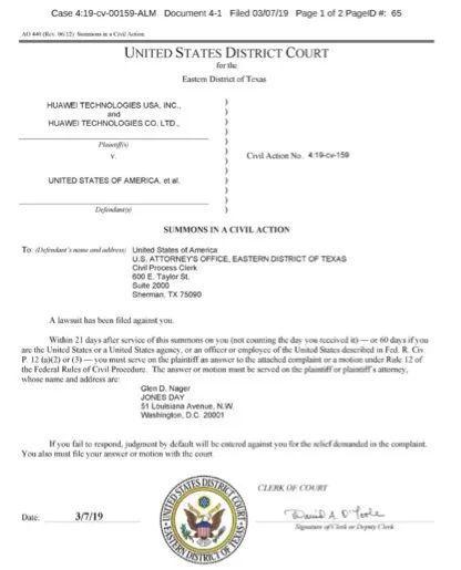 華為起訴進(jìn)展:美國(guó)法院已給美國(guó)政府發(fā)傳票